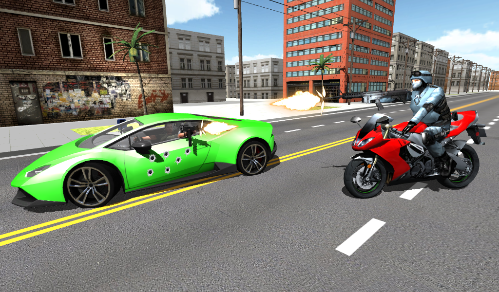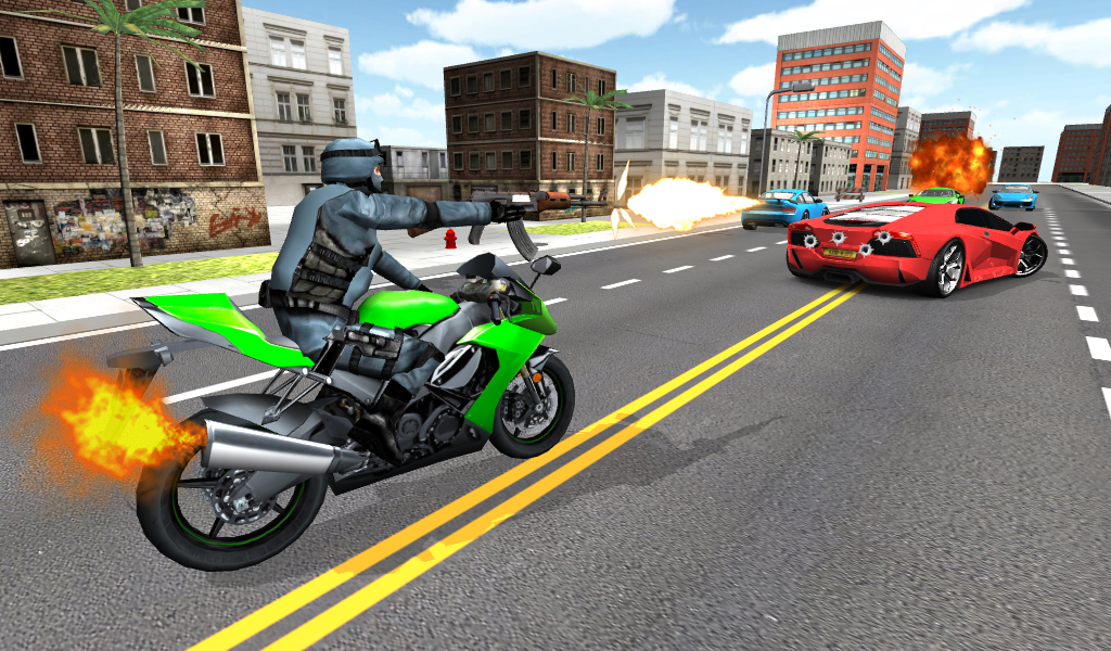 Become a moto shooter - hop on your motorcycle, shoot enemies and destroy them. Earn points and buy faster bikes and better weapons.